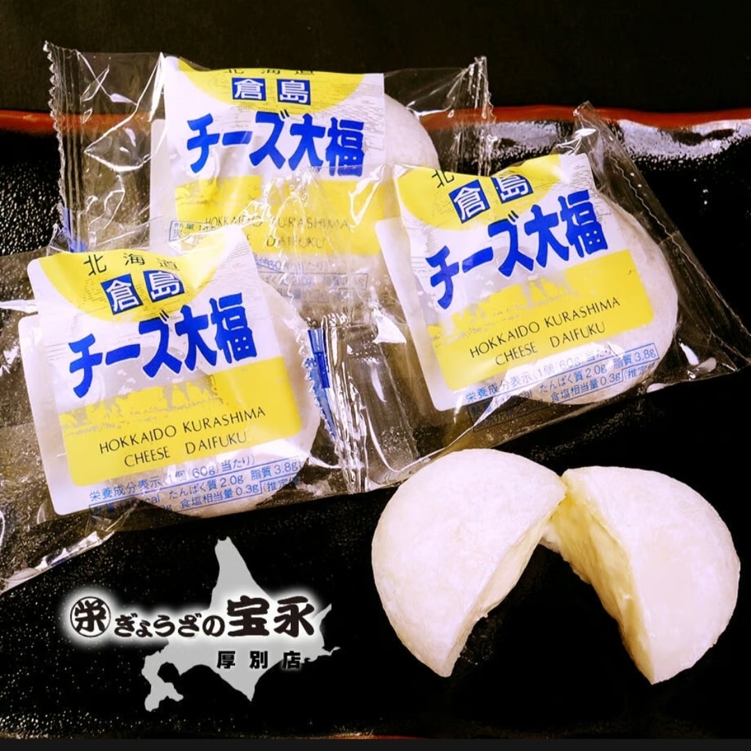 ○原材料名 餅米(北海道産) 、餅粉、ナチュラルチーズ、 砂糖、還元水飴、植物油脂、食塩、 /安定剤(加工デンプン、増粘多糖類)、乳化剤、 加工デ ンプン、香料、酵素、酸味料、酸化防止剤(V.E)、(一部に乳成分・卵・大豆を含む)